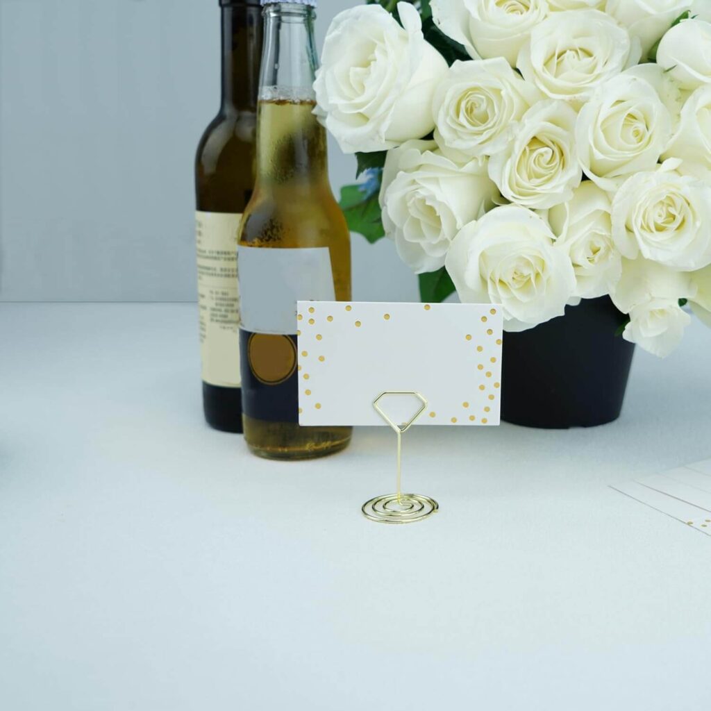 Once you’ve selected your main accessories, don’t forget to add the finishing touches that tie everything together. Consider adding decorative napkin rings, place card holders, or wine charms, to add a personal touch to each place setting. Pay attention to lighting, using candles or string lights to create a warm and inviting atmosphere. Don’t forget the importance of scent – a fragrant bouquet of flowers or a scented candle can enhance the overall sensory experience for your guests. Remember to keep your theme in mind, gold, white or silver, with a touch of color for a classic timeless feel, or colored and chunkier tableware fore a more relaxed vibe.