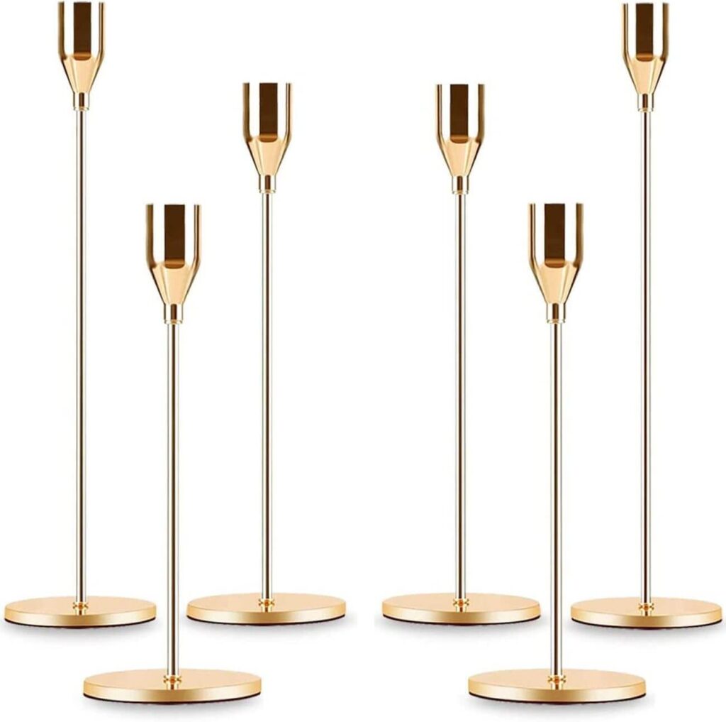 Adding height and dimension to your table decor can create visual interest and depth. Incorporate elements of varying heights, such as candlesticks, floral arrangements, or decorative vases, to draw the eye upward and create a sense of balance and proportion. Experiment with different textures, colors, and shapes to create a dynamic and visually appealing tablescape. Remember though, you may have to remove high centerpieces before dining, so you don’t obscure your guests’ faces! Consider opting for slim, taper candles instead of a regular candelabra, or fine, tall vases which hold a single stemor a bunch of grasses, if you wish to be less formal.